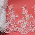 Wedding Lace Fabric Bridal Lace Appliqued Border White 1 Yard 3D Flower Sequined Embroidered Fabric Sewing Apparel Lace Trims