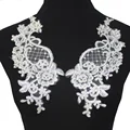 Bridal Wedding Appliqued Flower Cashew Lace 3D Embroidered Mirror Pairs Patches Sewing Silver Grilles Accessories 27.5*9.5cmUSD 13.95/lot