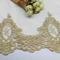 YACKALASI Gold Lace Fabrics Appliqued Champagne Gold Embroidered Wedding Lace Mesh Fabric Scalloped Sewing Trims Soft Tulle 26CMUSD 12.28/lot